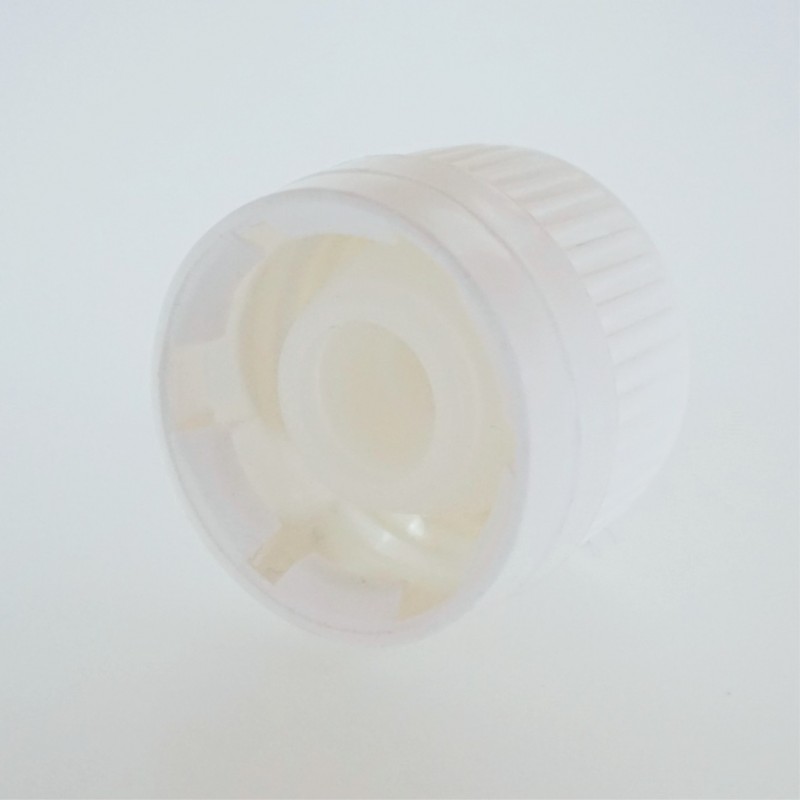 TAPÓN BLANCO ROSCA PVC CON PRECINTO CON OBTURADOR INTERIOR GOTEADOR PARA FRASCOS DE MOLDE DE ROSCA DE 28 MM.